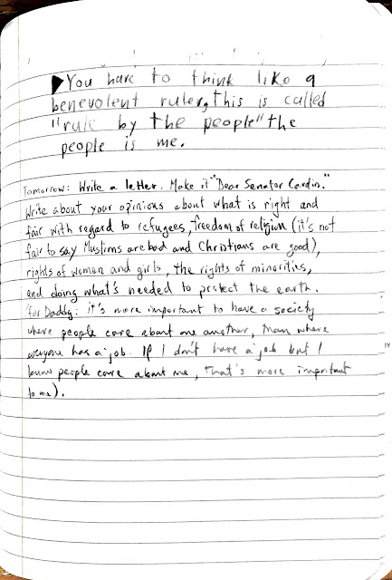 So there is a bigger picture here. When I search for a silver lining I see my girls and their education. Protesting harmful policies and asking the question "What is Democracy?"--I could not have asked for a more vivid way to teach them their rights and duties as citizens. They represent the future of this American experiment and are already, quite naturally, "good" citizens. We need them to grow up with the values of caring for one another, and realizing that that is more important than a callous life of individual survival and independence.